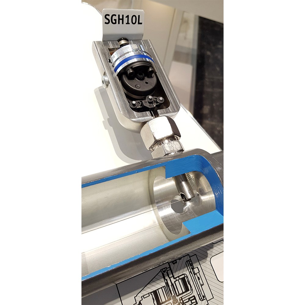 The SGH10 wire-actuated encoder measures the absolute direct cylinder stroke in a hydraulic cylinder. The new measuring system eliminates costly boring of the piston. As a result, integration costs are reduced compared to other measuring systems and a possible weakening of the piston is avoided effectively. The highlight of the SGH10L: Thanks to its unique lateral installation, the SGH10L can also be used in almost unsolvable applications, regardless of whether for applications in which no stoke lost can be accepted, extremely small piston diameters or in the case of cylinders with mechanical end position cushioning.